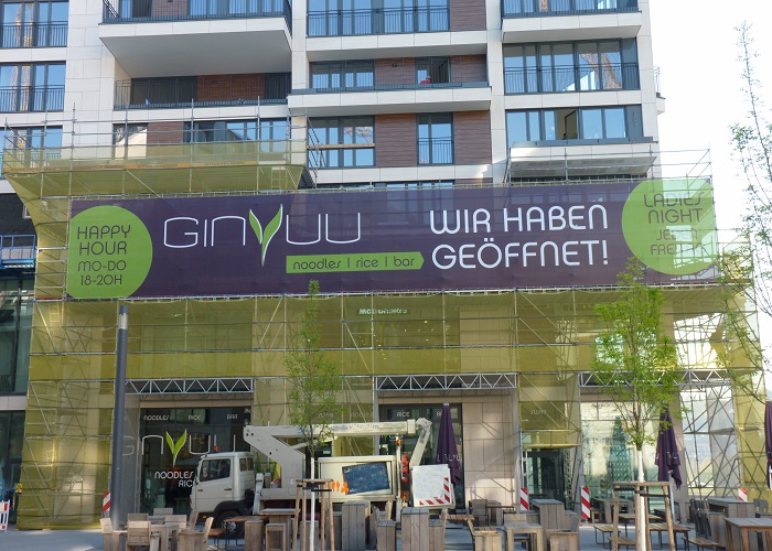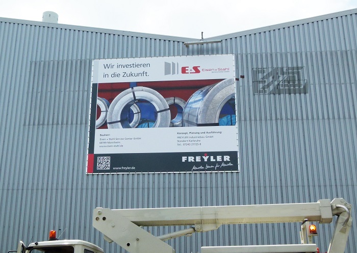 Gebäude oder am Gerüst, verbunden. Gedruckt wird mit modernsten und